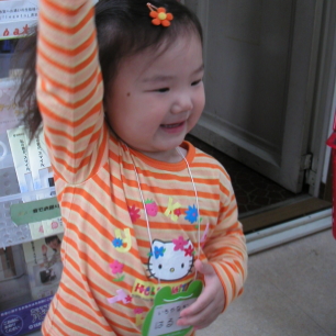 案の定、ぱるぱる、じいさんばあさんからたくさんの「御ひねり」を頂戴しました。ぱるぱるは意味なんかわかっていないんですけど、誉められたのはわかっているらしく、「ありがとうございました。」とペコリとお辞儀してました。
