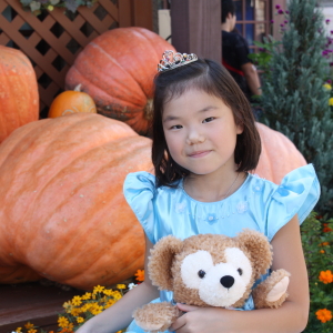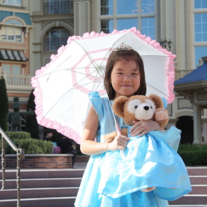 ダッフィーにもお揃いのドレスを着せて、シンデレラに変身したハルカとディズニーハロウィーンに行きました。