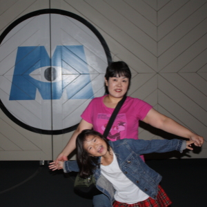 夕方、着替えてアトラクションに乗ったり、お買いものタイム。ディズニーの悪役たちのかぶりものを被って遊びました。