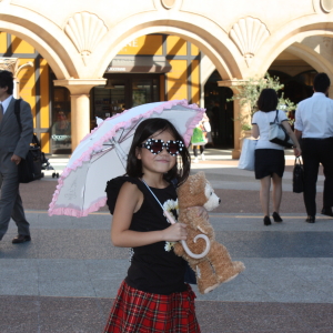 すれ違う人に「かわいい!」と言われて、超ご機嫌!! ハルカがかわいいのか、ダッフィーがかわいいのかわかりませんけどね。