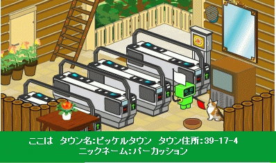「四男はサブリナの案内で夢の家電倉庫へ向かいました。 たどり着いたところは倉庫といっても 長屋の裏路地に建つ狭い木造家屋でした。 中に入ると、カメラ付き携帯だけでなく、 液晶ハイビジョンモニターやハードディスクレコーダなど、 未来の家電商品がいっぱい置かれていたのです。 それはどれも四男にとって魅力あふれるものでした。 家の中から倉庫の主が現れました。 ロケットタウン 33-11-4 (長男の店) ほのぼのタウン 30-17-50 (次男の店) ドルフィンタウン 15-11-47 (三男の店) ピッケルタウン 39-10-8 (四男の店) ドルフィンタウン 17-13-35 (四男の仮宿) ほのぼのタウン 35-4-18 (夢の家電倉庫) ………つづく」 |