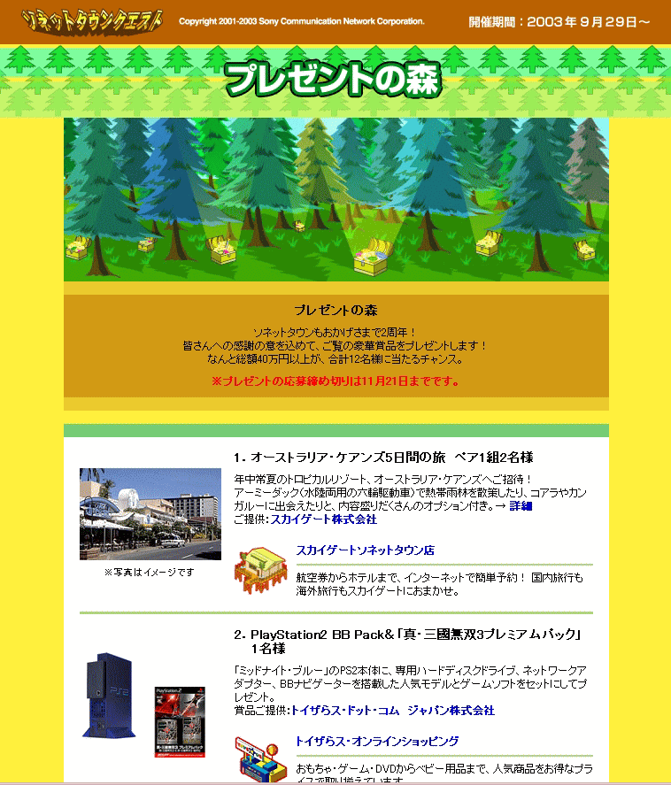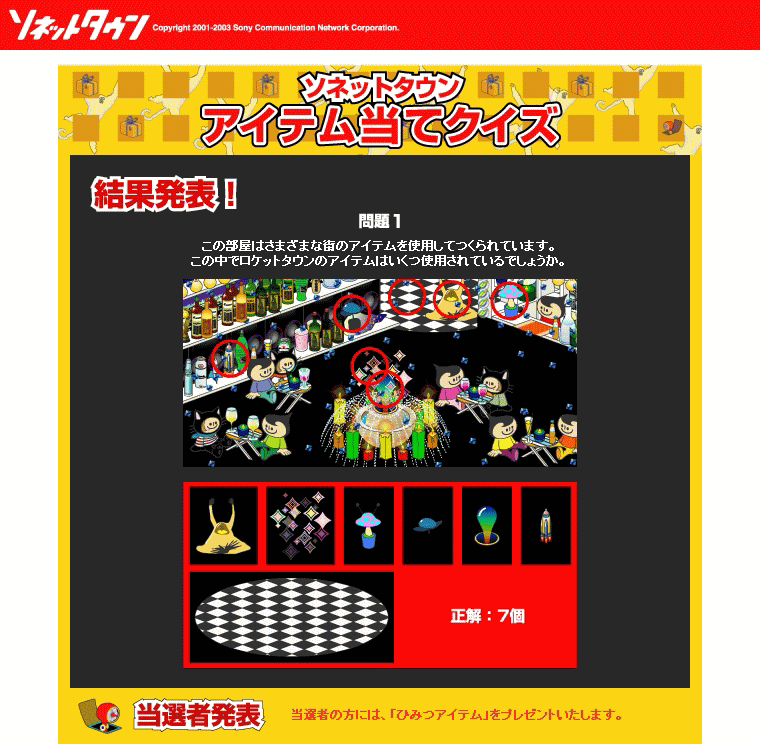 2003年ソネットタウンアイテム当てクイズ | ||||||