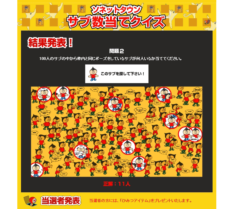 ロケットタウンのアイテム数当てクイズ | 同じポーズのサブを探せクイズ | |||||