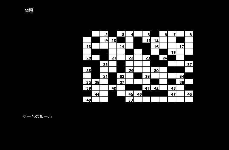 [2003.11.11] 2003年10月24日17:00から11月5日まで開催されたクロスワードクイズのイベントで、先着正解者50人に「モノトーンくま」のアイテムがプレゼントされました。正解応募第1号となったけぼちゃんさん(ほのぼのタウン8-8-10)のゴールは、 OPENから約51時間後の10月26日19時54分。タテのカギの更新がまだなかった時間です。この段階で正解するとはお見事! |
