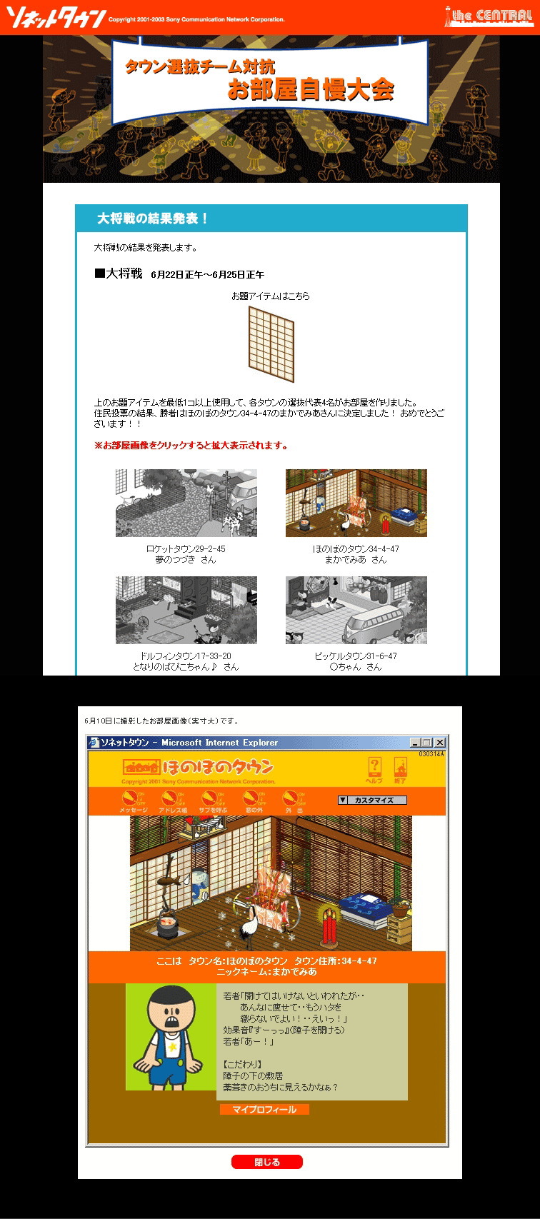 タウン選抜チーム対抗お部屋自慢大会 結果発表 |