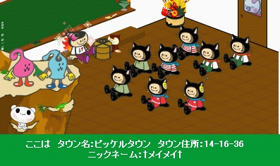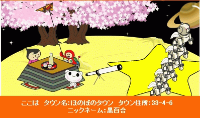 アイテム総数はわかりませんが35ぐらいかな? セールスポイント:未来の花見を(宴会?・笑)のお部屋にしてみました。 宇宙飴を売っている黒猫ちゃん。 宇宙飴は1粒で1時間、宇宙服なしでいられる魔法の飴。 三輪車、おもちゃカート?いえ、新型宇宙ロケットです(笑) この星には、野良犬、野良鳥までいます。 ほかの鳥は焼き鳥にされた模様です。 あ、宇宙警察もビール飲みながら、パトロールしてるよ・・・ 後で、本部長に起こられるぜ~~(爆 |